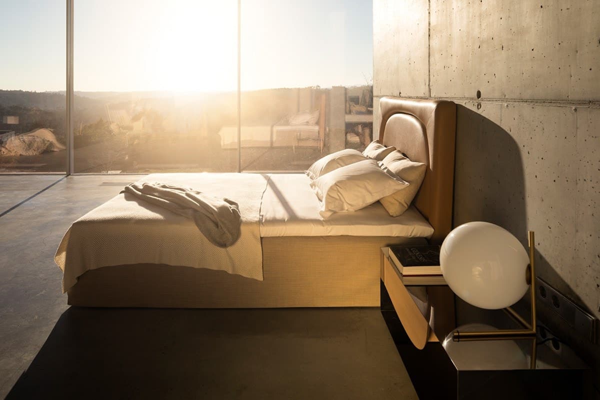 Eden is a soft upholstered headboard for the DUX bed with a simple, yet elaborated, signature in the shape of a bow.