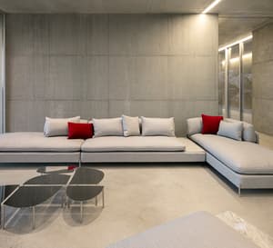 The Alicia sofa has integrated hard tabletops the sofa can easily be composed into a kind of ’socialising landscape’.