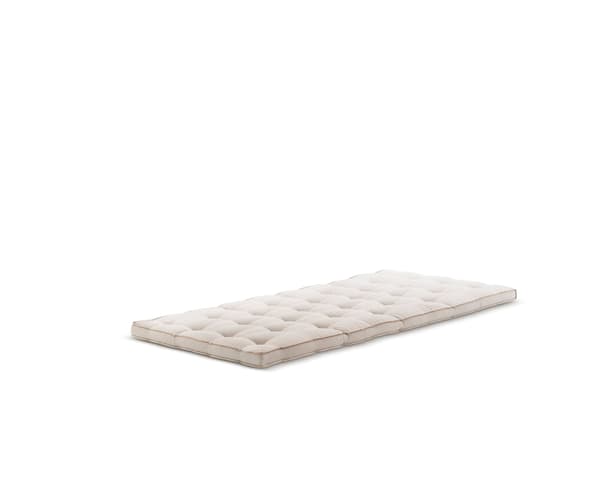 Part of our component-based sleep system, our deeply tufted top pads feature a core of natural latex wrapped in a premium natural wool and finished in a 100% cotton outer fabric. Available in three firmness levels, they are unfastened to the bed to ensure maximum comfort flexibility.