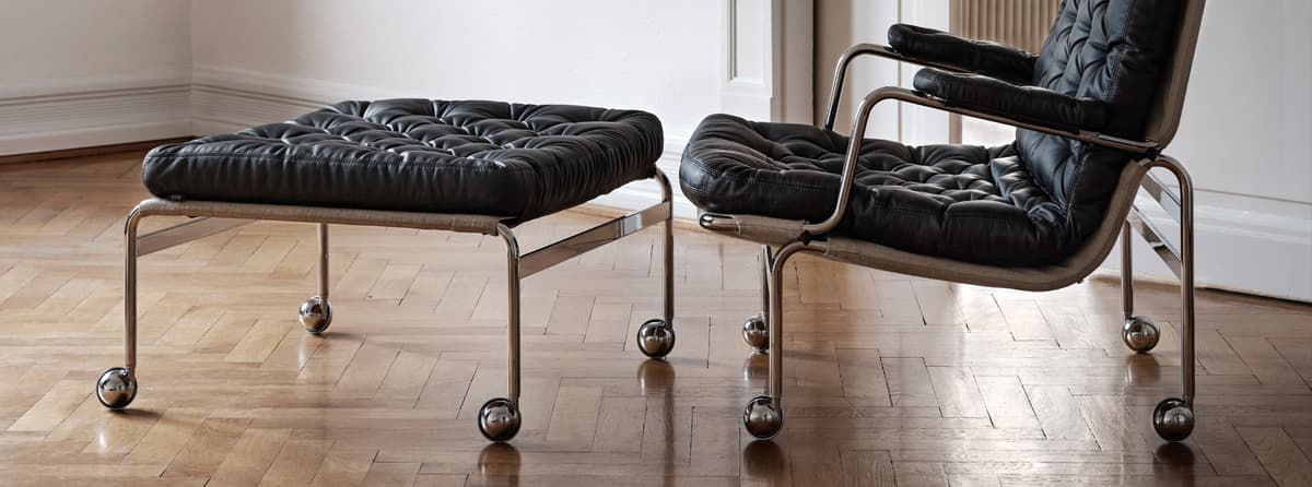 Classic stool designed by Bruno Mathsson. It is designed to match Pernilla 69 easy chair and to get extra comfort.