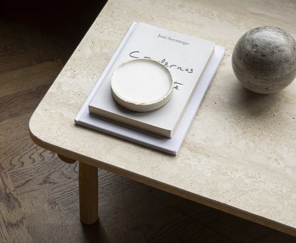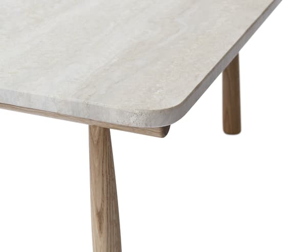 The Domus table has a limestone table top and a frame made of solid oak treated with wax oil. The table was designed in 2020 by Norm Architects to extend the DUX collection. The Domus collection also includes the revitalised Domus chair wood with matching stool and Domus chair steel.