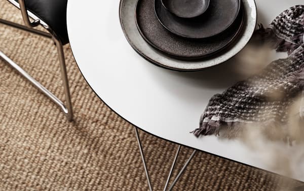 Oval dining table that encourages conversation and eye contact with all guests. Also available in two more versions, a dining table with two extendable tops and a smaller café table size.