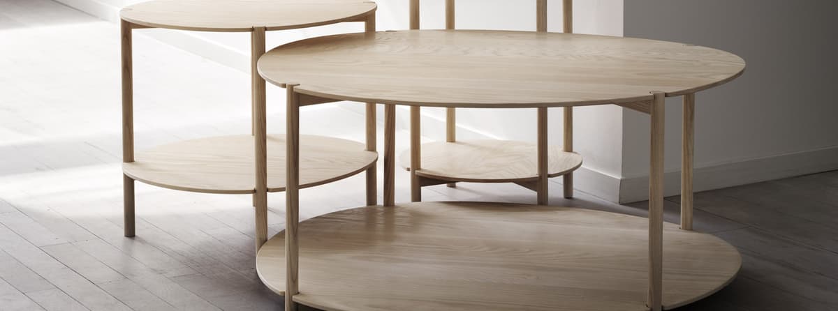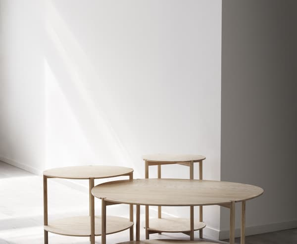 Lunaria works particularly well beside the Anita easy chair as it has a kinship through shared materials and design characteristics. The versatile Lunaria tables come in three different sizes.